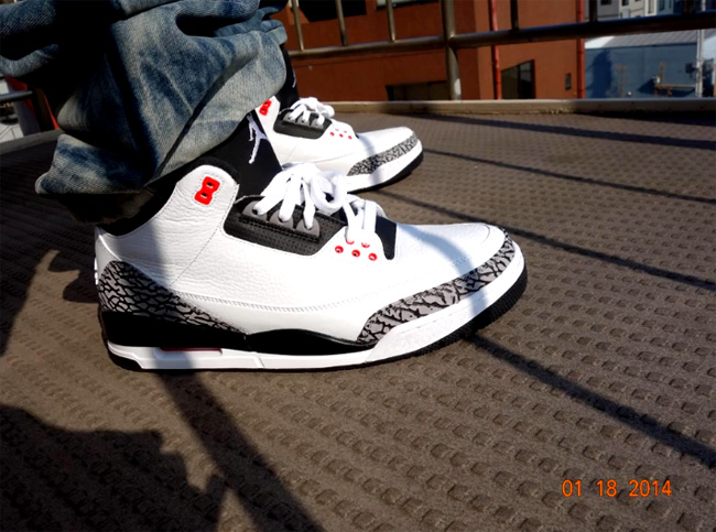 这款白色鞋面搭配黑灰爆裂纹饰的 Air Jordan 3 "Infrared 23" 将于 3 月 8 日正式发售。 鞋身采用了类似白水泥的搭配,所不同的是内衬和鞋舌采用了黑色打造,再点缀了红外色的细节。 男款货号:136064-123 女款货号:398614-123 发售日期:3 月 8 日 售价:$170 相关信息: Air Jordan 3 "Infrared 23" 上脚实拍 & 实物图赏 Air Jordan 3 "Infrared 23" 实物图赏