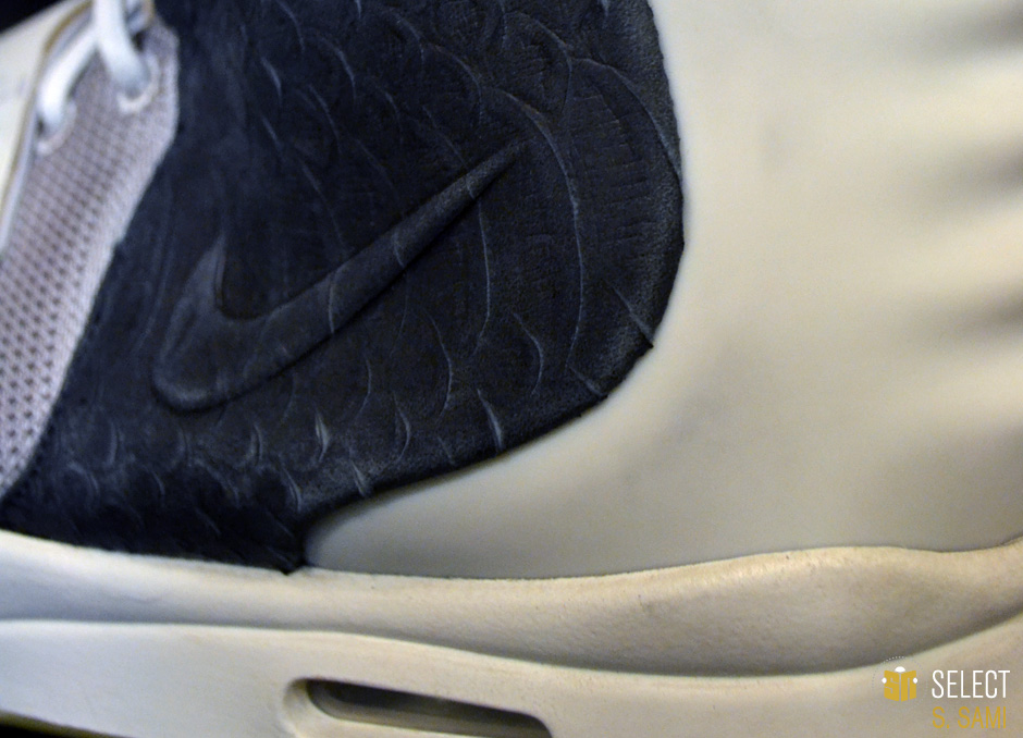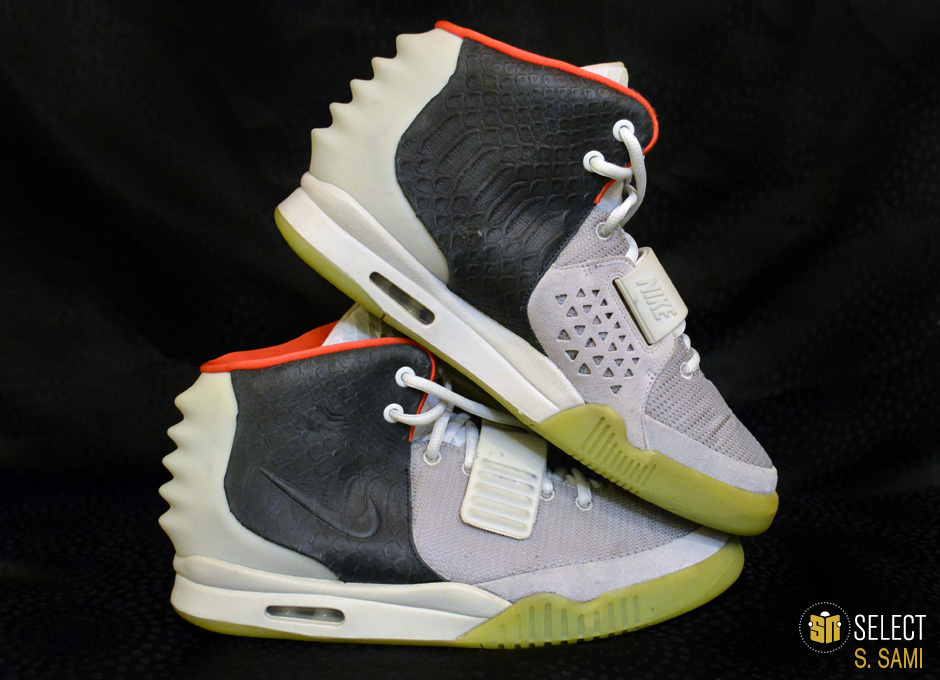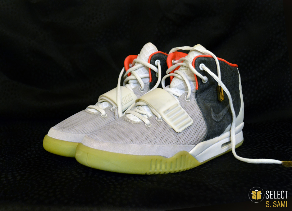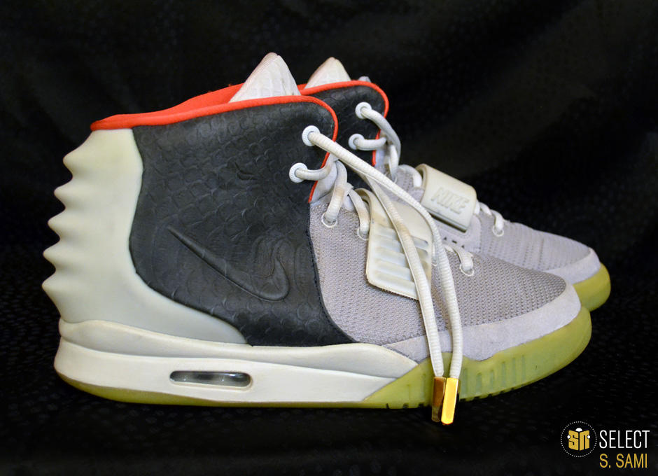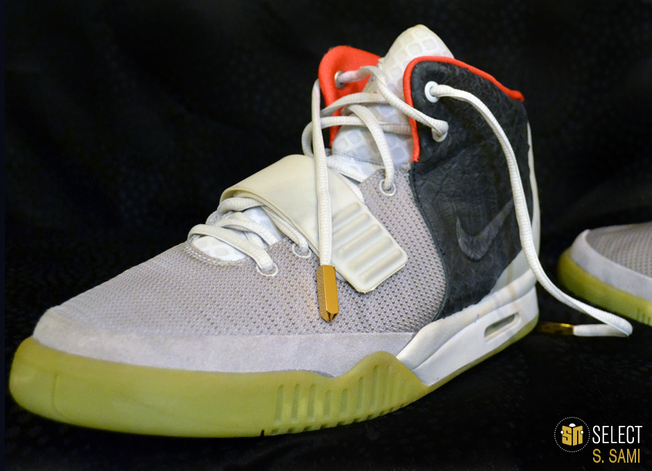眼前这款狼灰/黑/纯铂金配色Air Yeezy 2样品据称是为Kanye West本人制作的唯一样品。这双样品现在的拥有者S.Sami曾就职于服装品牌Ralph Lauren,与Kanye有着不错关系的他因此能够得到这双珍贵鞋款。而他也透露,Kanye本人很喜欢这款配色,曾希望Nike作为第三配色进行市售,但Nike认为这个配色与最初的两款配色太过相似,因此否决了这个提议。