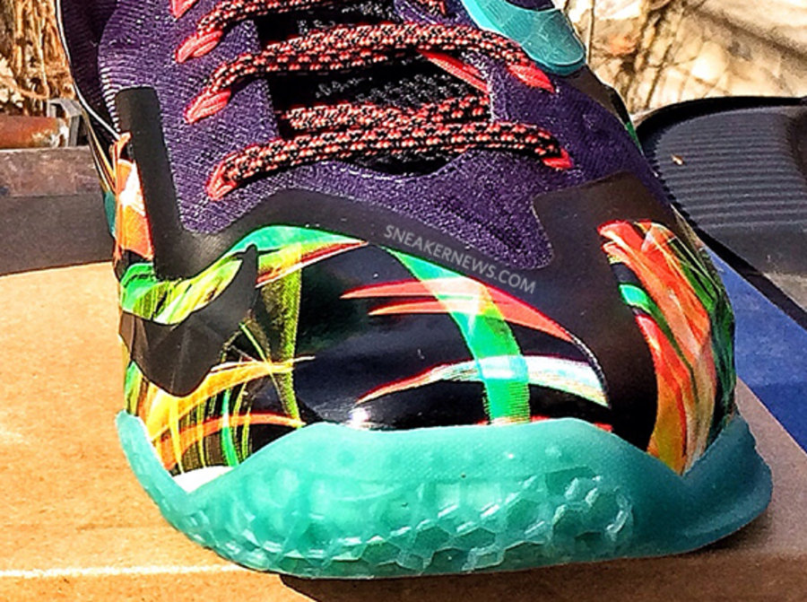 Nike Basketball 为 LeBron 重新打造了一款 "Floral" 配色的鞋款。渐变紫色鞋身配以水蓝色以及红色细节,原本装饰于内衬的花卉图案此番高调表现于Hyperposite材质。 或将于今年夏季发售。