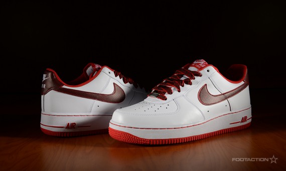 Nike近日为Air Force 1 鞋款推出全新白红配色,白色皮革鞋身搭配红色大底,醒目的红色内衬及Swoosh点缀其中,并辅以黑红条纹鞋带。这双极为简洁的Nike Air Force 1 将在Foot Action等店铺上架。