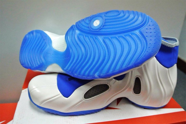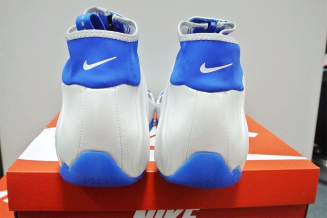 这款纽约尼克斯配色的 Nike Air Flightposite 2014 "Knicks" 又有了更多的实物曝光,或将成为 Air Flightposite 系列在今年复刻回归的第二款配色。 白色的发泡鞋面搭配天蓝色的布料和大底,白色的 Swoosh 则采用了橙红色勾勒边缘,起到抢眼的点缀作用。 这款配色也是 1999 年阿兰·休斯顿所穿着的 PE 版配色,十分值得期待!