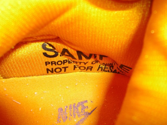 虽然Kobe未能出现在球场,但从大师之路以来的数周他与他的球鞋一直都是大家关注的焦点之一。就在Kobe 9 Elite正式发售之时,eBay上出现了一款曾经Kobe着用过的创新鞋款,Air Flight Huarache。此双湖人配色版本是为Kobe制作且亲着,鞋款上还附有Kobe亲签。