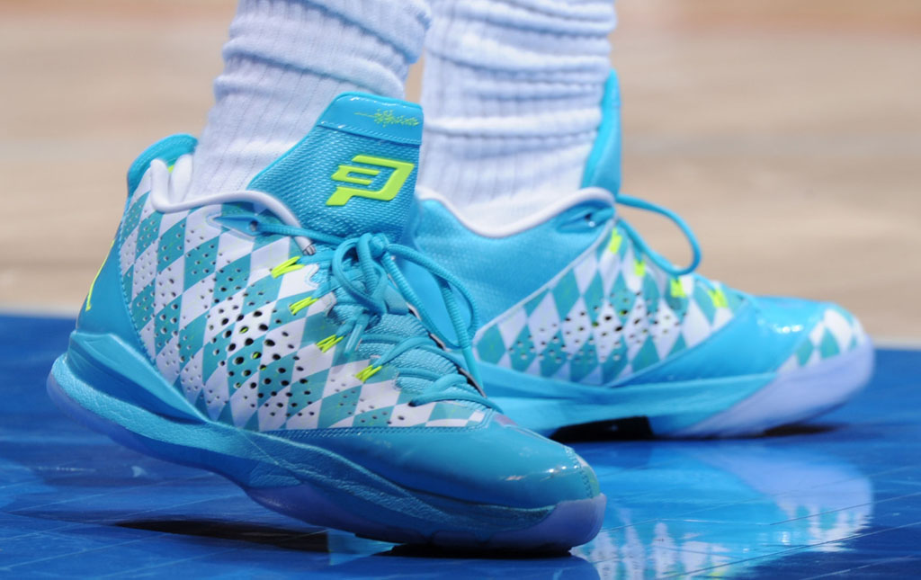 因肩伤停战18场比赛之后,Chris Paul带着球队以大胜费城76人的姿态凯旋回归。此场回归赛中Chris Paul亲着NIKEiD PE企划的新作,“大学蓝菱纹”Jordan CP3.VII。鞋款以大学蓝作为主色,配以白色菱纹装饰以及荧光绿色细节点缀。