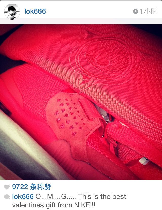 阿乐余文乐在 IG 上晒出了自己的情人节礼物,最近红得发紫的 Nike Air Yeezy 2 "Red October"。他自己都激动地表示这是来自 Nike 的最好的情人节礼物了!
