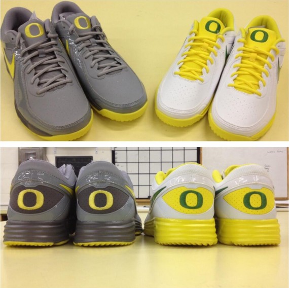 为俄勒冈鸭队制作的PE鞋款并非只有数量极少的Air Jordan,事实上为这所学校以及运动员们打造的专属鞋款仍有颇为庞大的数量及品类,比如眼前这两双Lunar MVP Pregame。一灰一白,鞋身均附有金黄色细节装饰,鞋舌以及后跟附有标志性“O”logo。