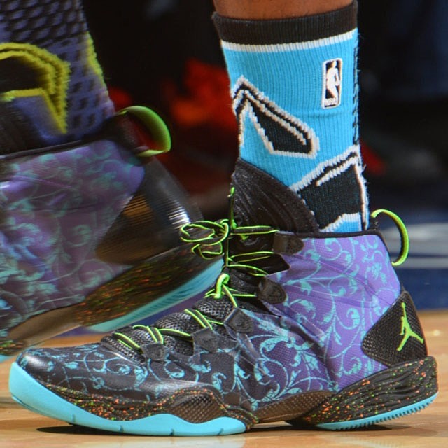 为迎接今天的新秀赛,Jordan Brand特意为Victor Oladipo打造了一双极为别致的Air Jordan XX8 SE PE。黑蓝渐变鞋面辅以特殊花纹装饰,并搭配黑色细节与蓝色大底。(图片来源网络)