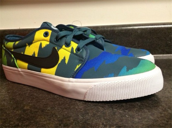 在 Roshe Run 鞋款发布之前,在 Nike NSW 系列中一直占据主导地位的 Nike Toki 此次曝光两款未发售配色。这次的两款配色,鞋身布满闪电图形,一款配色为紫色搭配黄、橙色迷彩。另一款以灰色搭配蓝、绿色迷彩。下面我们通过各个角度来欣赏一下这两款个性鲜明的球鞋,目前这两款配色在 eBay 拍卖,喜欢的朋友可以关注。