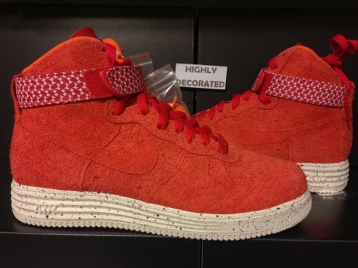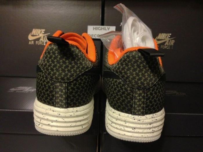 Eddie Cruz以及他的Undefeated团队再次联手Nike打造联名鞋款,此番即将推出的是Lunar Force 1。全新系列包含低帮以及高帮两款,低帮版本橄榄色鞋身搭配橙色内衬以及黑色细节,货号652805-003,高帮版本则通体橙红色配以橙色内衬,货号652806-660。
