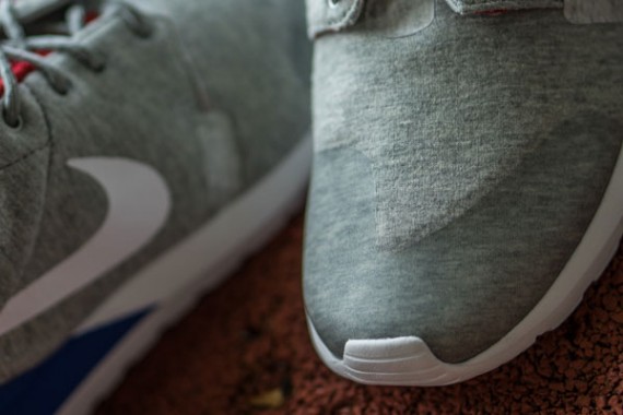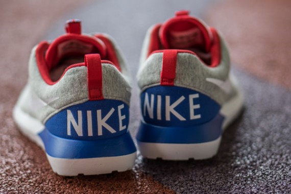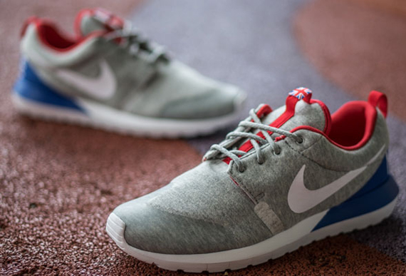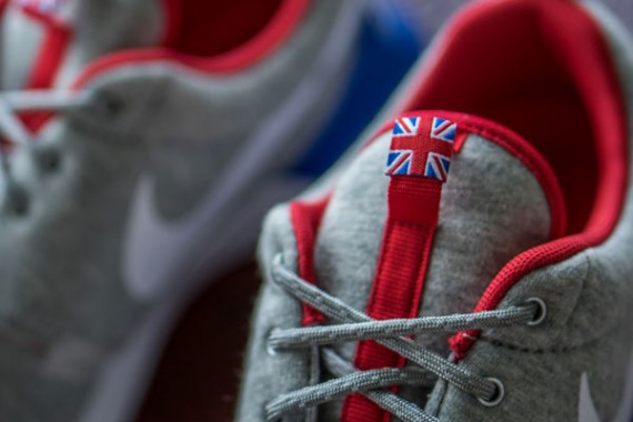 Nike Roshe Run究竟有多火?看看从最初款衍生开来的新版有多少就知道了。眼前这双全新Roshe Run NM以英国为设计主题,鞋舌绣有英国米字旗,鞋身以灰色为主色,配以源于英国旗的红色、蓝色以及白色细节。此款即将发售。
