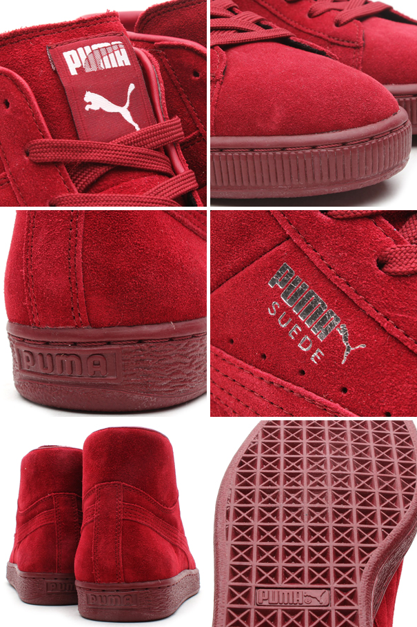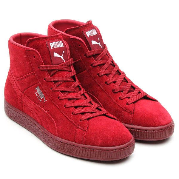 Puma近日将亮眼的大红色运用在经典鞋款Puma Suede Mid Classic+之上,醒目的红色鞋身搭配深红大底,辅以白色细节点缀令整双鞋款显得极为喜庆。这双Puma Suede Mid Classic+ 现已在atmos等指定鞋店上市,货号:356340-07。