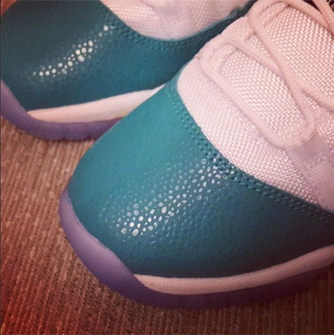 Air Jordan 11有着颇为神圣的地位,而除了低帮版的蛇纹材质之外,Air Jordan 11基本没有舍弃过漆皮这一标志性特色。不过网上曝光一款即将市售的全新Air Jordan 11 Low GS,水蓝色部分换为了safari纹理材质,虽然以统一色调呈现但无疑也是一次新的挑战。