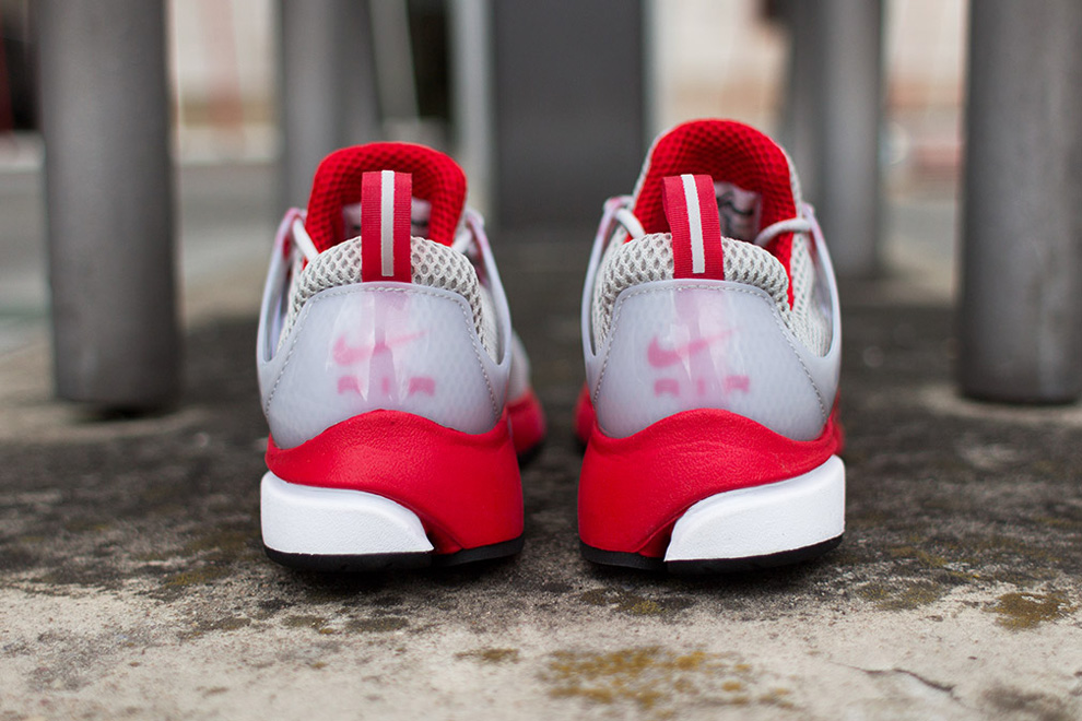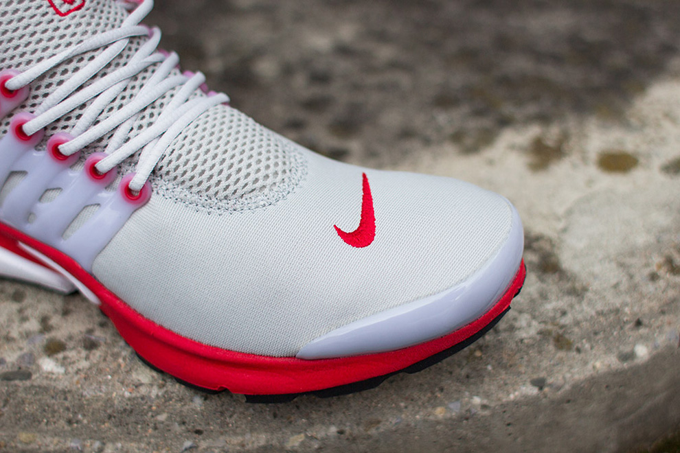 灰色Lycra材质鞋身搭配大红色中底,辅以灰色后跟及TPU装饰,令这双Nike Air Presto 简约十足又不失亮点。此鞋款货号:347635-016,售价:100欧元。Nike Air Presto诞生于2000年,是Alpha Project系列中最具代表的作品之一。Lycra鞋面搭配Air Sole中底科技,带来不俗脚感。