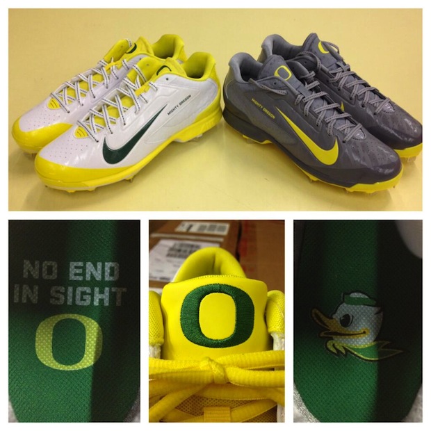 全新橄榄球赛季即将开战,Nike也已为俄勒冈大学的橄榄球队员们准备好了专属鞋款装备,主客场双色Nike Huarache Pro。一白一灰两款均有黄色细节点缀,鞋身附有“O”logo、“MIGHTY OREGON”字样、座右铭“NO END IN SIGHT”以及吉祥物图像等学校球队元素。