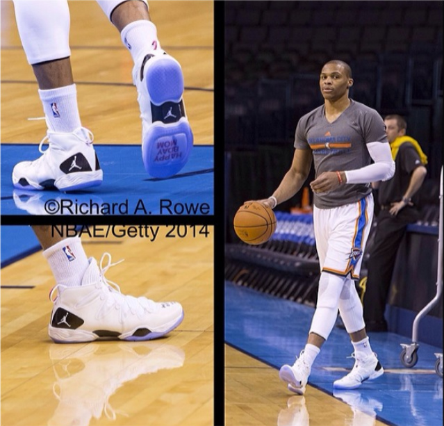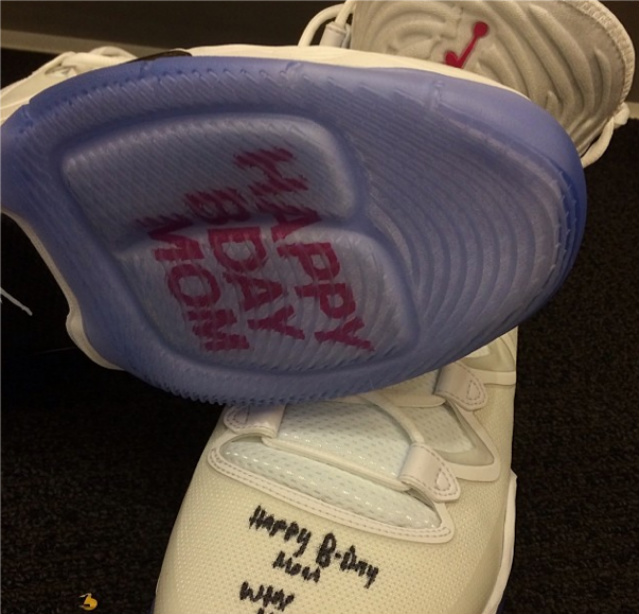 拉塞尔-威斯布鲁克结束了近3个月的养伤,在今天对阵热火的比赛中正式复出。巧合的是,今天正好是威少母亲的生日。为了庆祝这一重要时刻,他也穿上一双由Jordan Brand特别打造的Air Jordan XX8 SE“Happy B-Day Mom” PE,简洁的白色鞋身搭配黑色碳板装饰,水晶大底内印有Happy B-Day Mom字样。而威少也亲手在鞋面上写有对母亲的祝福。