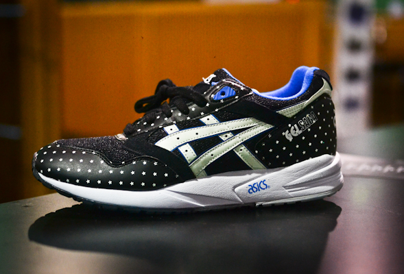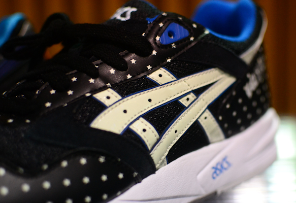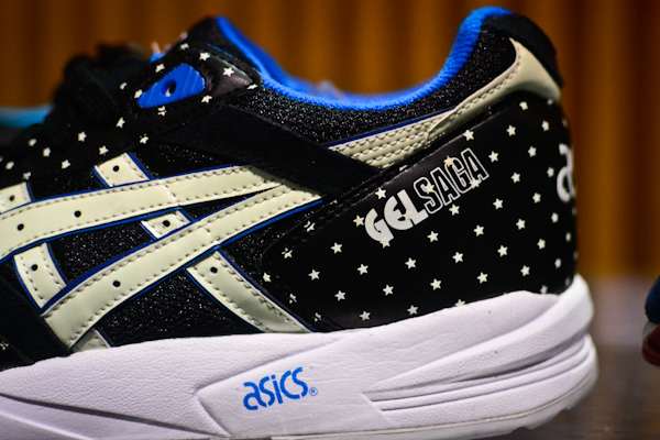 在近日Agenda举办的Las Vegas潮流展会上,Asics曝光了一双全新“Glow In The Dark”配色的Gel Sag。黑色鞋面上布满了星星装饰,搭配白色中底及蓝色内衬,据悉此鞋鞋身上的Asics Logo采用夜光材质打造而成,可在夜空中呈现出别样的感觉。这双Asics Gel Sag“Glow In The Dark”配色预计将于2014年秋季正式上市,喜欢的朋友请关注我们的后续报道。