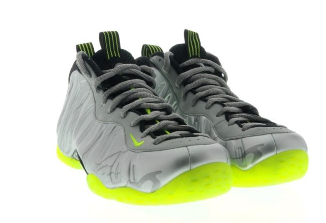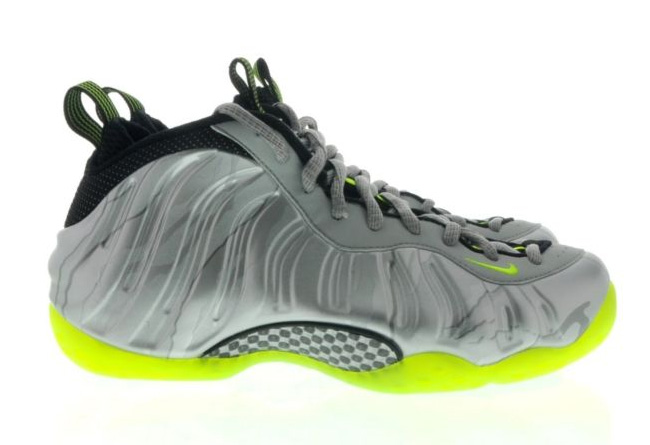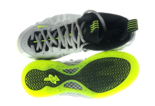 带来 360 度全方位的 Nike Air Foamposite One "3M Camo"实物展示,金属质感强烈的银灰迷彩发泡鞋面,搭载抢眼的荧光绿大底,鞋面带有 3M 反光效果,在弱光中反光效果明显。