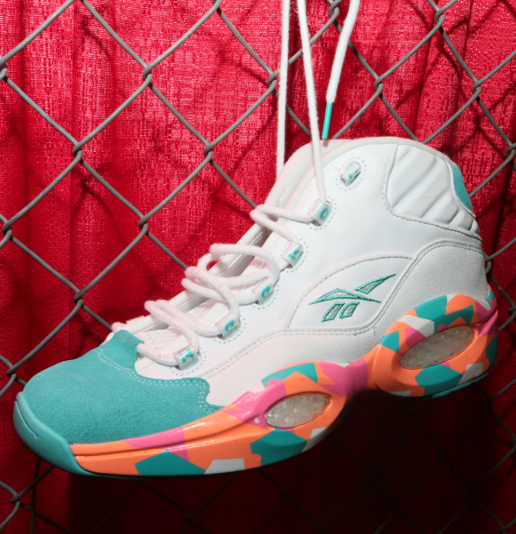 本周在费城进行Allen Iverson的球衣退役仪式后,Reebok将继续推出全新配色Question。此款以白色鞋身搭配水蓝色麂皮鞋头/后跟,中底附有橙/粉/白/水蓝四色迷彩纹理装饰。货号V44034,5月23日正式发售。