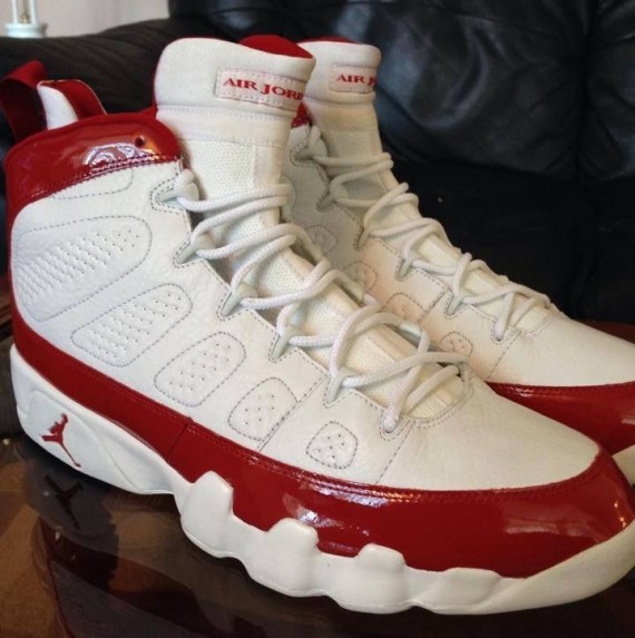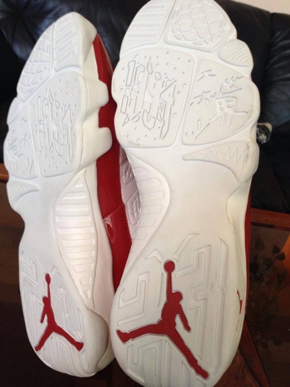 整个NBA联盟没有哪个教练能比Jason Kidd拥有更多的Air Jordan PE。眼前这双以白色皮革搭配红色漆皮以及细节点缀的Air Jordan 9便是为其在新泽西网队时期打造的专属PE,后跟附有背号5刺绣。