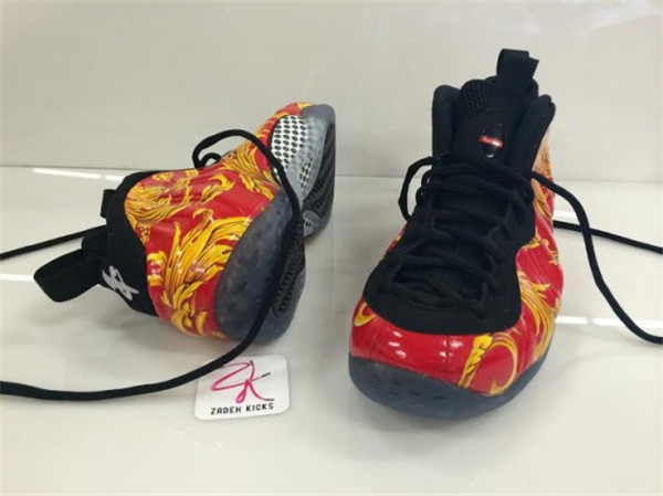 Supreme x Nike Air Foamposite One 的曝光可谓横空出世,极度浮夸的花纹加载在热门鞋型之上,惊爆了许多人的眼球。后来陆续有国内外的玩家拿到了这款鞋的实物,此次的图片就来自一位海外的卖家,也让我们有机会再次一度真容。
