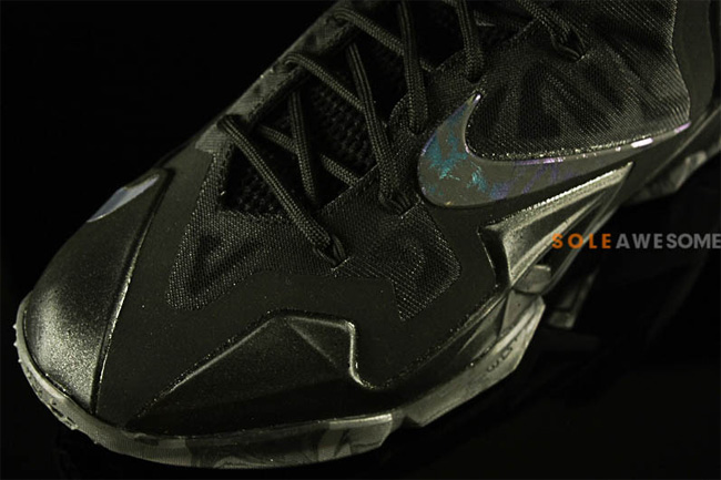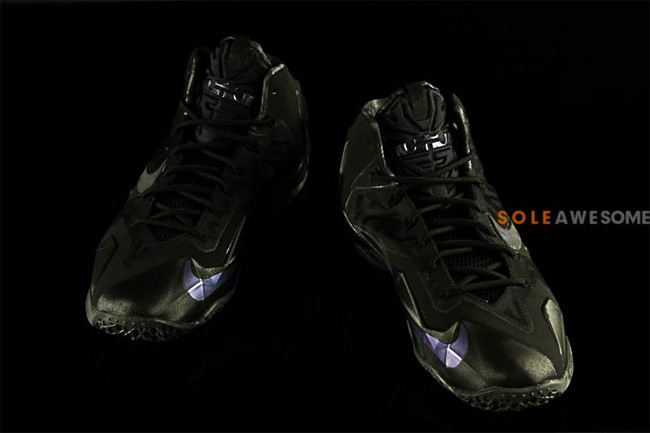 这款“停电版”的 LeBron 11 "Black Out" 誓将低调进行到底,鞋身的发泡材质和 Hyperfuse 材质都采用深黑色打造,Swoosh、LBJ LOGO 采用了特殊的涂装,反光效果颇为绚丽。 目前尚无明确的发售日期。 货号:616175-090