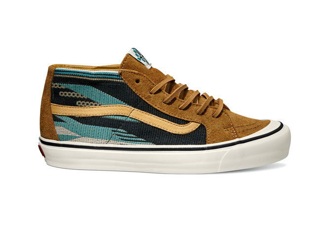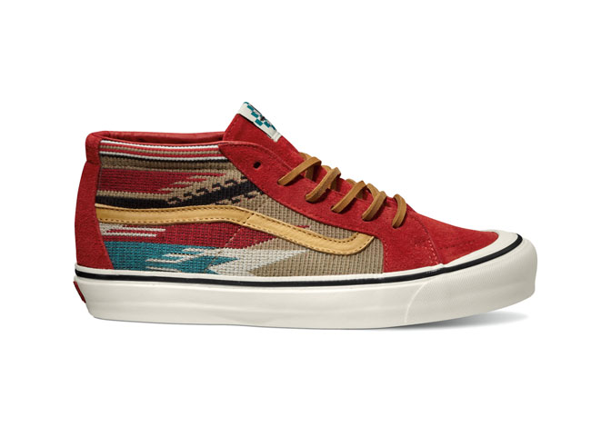 2014 春季系列国内上市共有3个鞋款, TH Sk8-Mid LX 设计灵感来源于新墨西哥的原住民图案结合 Vans Mid Skool 的经典鞋型设计。TH Court Hi LX 继去年出现在 Taka Hyashi 系列中之后再次以新设计回归,鞋款的设计灵感来源于1950年代的运动鞋款,本季使用了迷彩和 Vans 经典棋盘格组合的鞋面设计,在重磅的帆布上呈现出特别的印花效果。TH Court Lo LX 是 TH Court Hi LX 的低帮鞋款,鞋身重磅帆布鞋面上采用了日本式蜡染和军事风格配色组合。