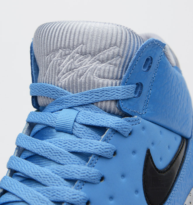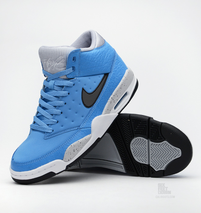 相隔上一次发售Nike Air Flight Classic已有数月,在历经豹纹以及safari纹理的高调装饰后,全新配色呈现Nike最经典的元素。鞋身以大学蓝为主色调,挡泥板以及脚踝部分皮质附有爆裂暗纹点缀,中底灰色部分还附有泼墨设计。此款货号414967-400,现已发售。