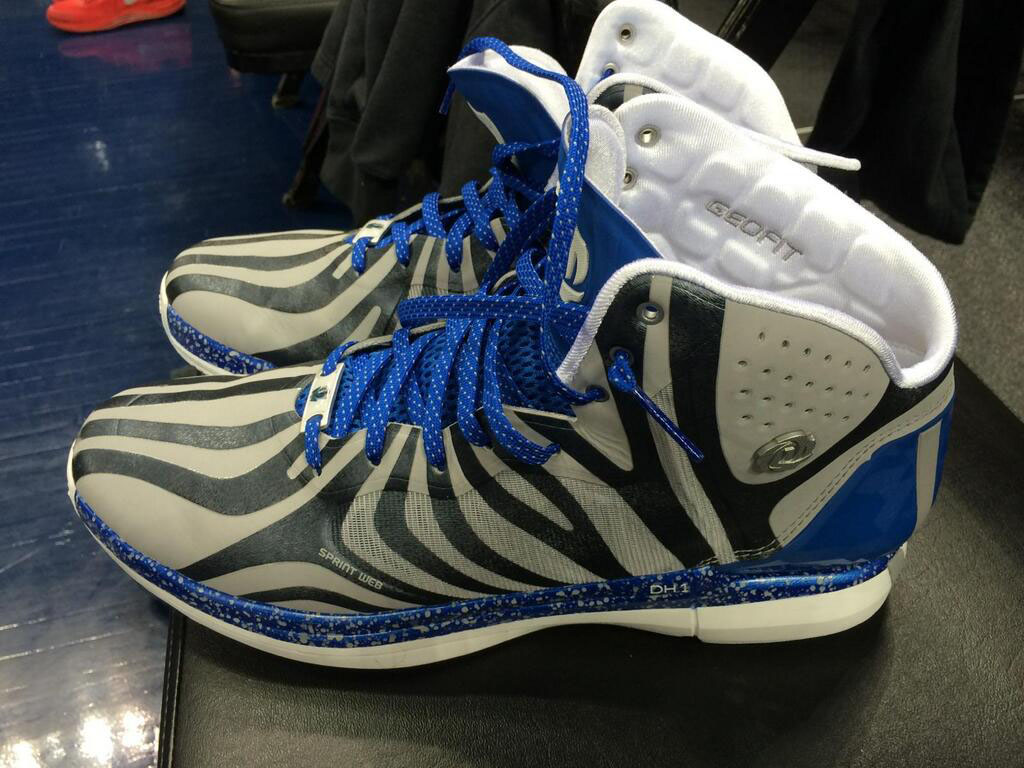 很快你就能看到达拉斯小牛队后卫Devin Harris穿着自己配色的adidas D Rose 4.5亮相球场。通过miadidas实现,Devin Harris选择灰色以及黑色作为鞋身条纹主色,再搭配蓝色以及白色细节。