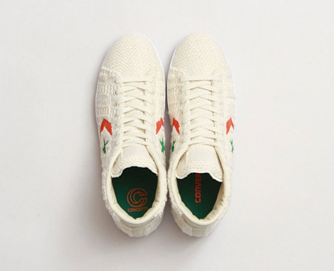 为迎接西方传统的圣帕特里克节即将来临,日前运动品牌 CONVERSE 联手时尚名所 Concepts ,共同打造了一款令人眼前一亮的 Pro Leather Hi 联名版本。这款作品最大的亮点就在于鞋身采用了奶白色织物构成,质感奇特。然后再辅以红绿色的星箭 Logo,Concepts 以及 CONVERSE Logo 分别出现在了左右脚的鞋垫之上。据悉鞋款将于3月15日在 Concepts 限量发售。