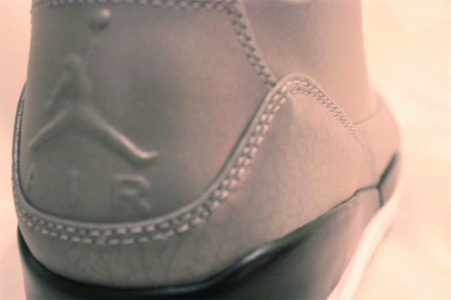 不仅将反光材质应用于全鞋面,也采用了水晶大底,鞋头部分的包裹方式也和 Air Jordan 5 类似。