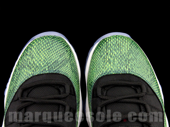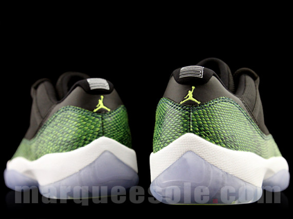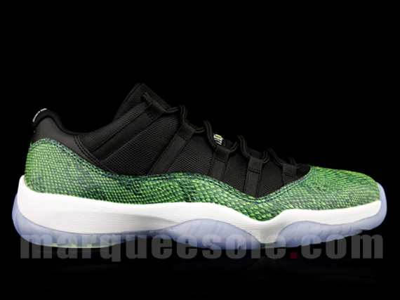 这款Air Jordan 11 Low “Green Snake,鞋身由黄绿蛇纹材质与黑色网面拼接而成,搭配白色中底及水晶大底,极为清新。这双Air Jordan 11 Low “Green Snake预计将在4月19日上市,尚无具体产品信息,喜欢的朋友请关注我们的后续报道。