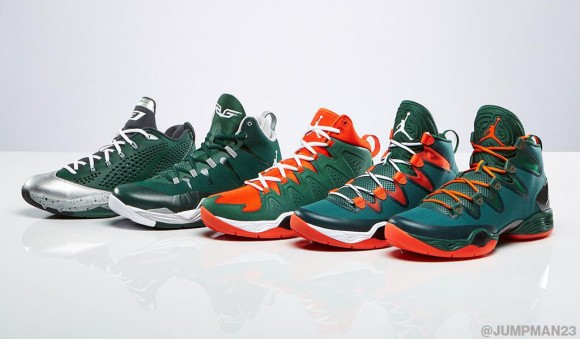 Jordan Brand为圣帕特里克节的比赛打造了一系列PE鞋款,希望在这特殊的节日为赛场上的球员们带来更多好运。整个系列以幸运草的绿色为色调主线,鞋款包括CP3.VII、Super.Fly 2、Melo M10以及Air Jordan XX8 SE,分别点缀银灰色或橙色细节。此系列没有市售计划。