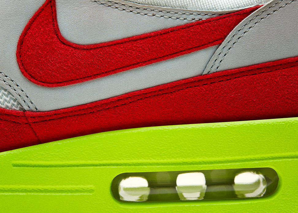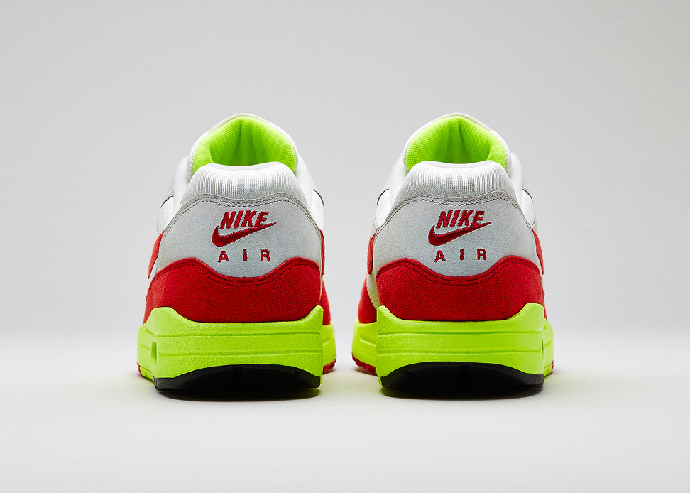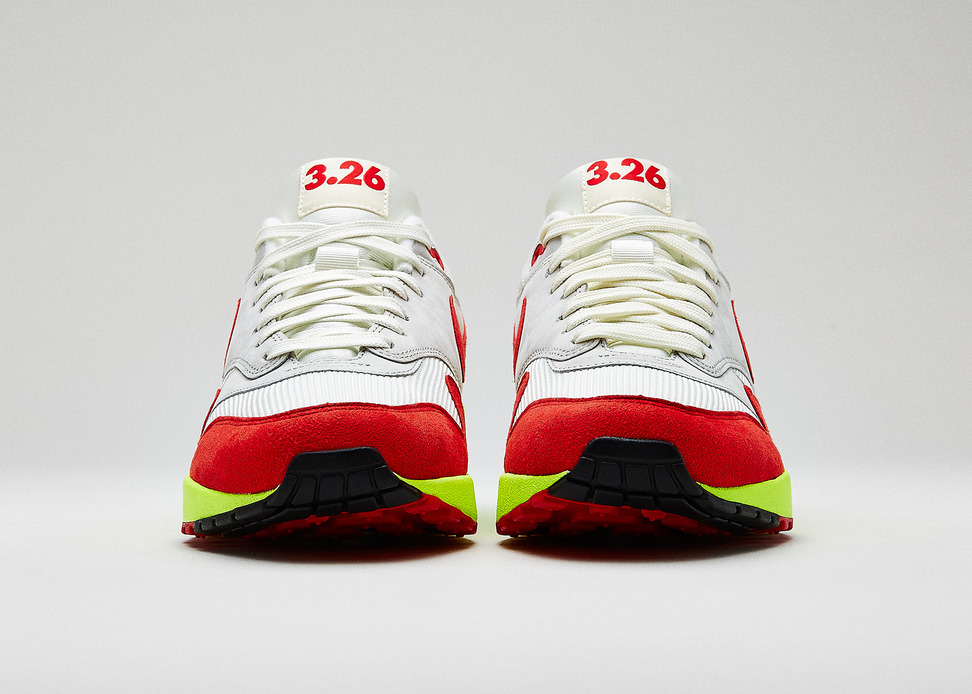 1987年3月26日Air Max 1正式推出,为纪念这一伟大事件Nike将这天定为“Air Max日”,同时将于今年的这一天推出特别版Air Max 1以示纪念和庆祝。此双特别版融合了元年鞋身的白/红色调以及极富现代感的荧光色细节,鞋舌绣有Air Max 1的生日“3.26”。