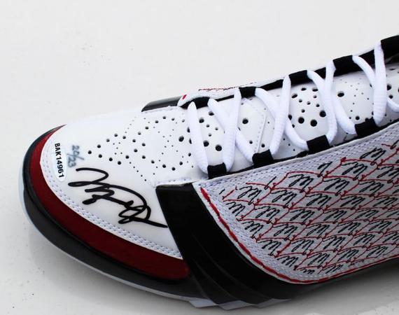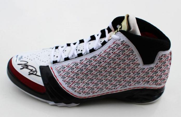近日eBay上出现了一双十分稀有的Air Jordan XX3,这款由Upper Deck推出的乔丹亲签版本当年一共限量发行23双,而eBay上出现的则为第20双,这双证书、配件齐全的藏品起拍价达到了5999.99美元,请大家欣赏图片。