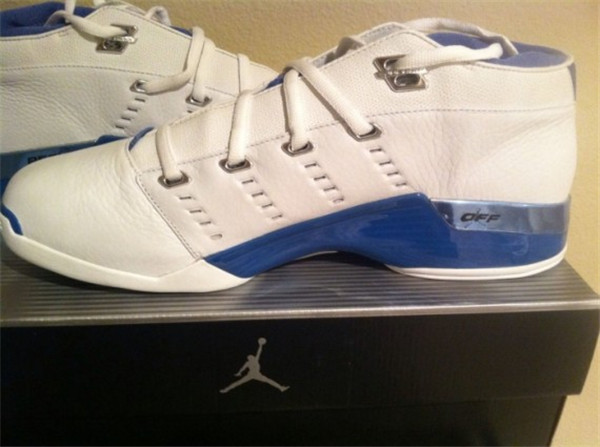Air Jordan 17鞋款在市面已经非常少见了,复刻次数比较少也是原因之一,但不可否认的是它绝对是整个乔丹系列鞋款中非常重磅的一款球鞋。作为在奇才效力阶段的战靴,Air Jordan 17对于Jordan的拥趸有着不同的意义。图中这双 Air Jordan 17 Low 鞋面使用白色皮革,蓝色点缀后跟和细节,目前鞋款在eBay拍卖,有兴趣的朋友可以关注一下。