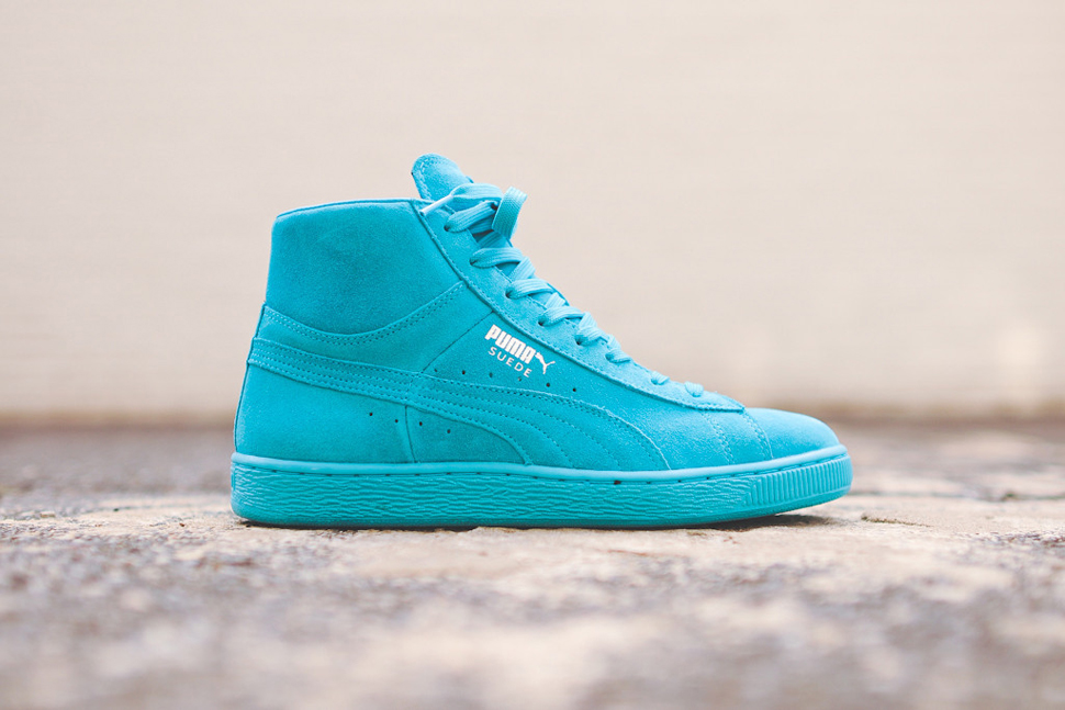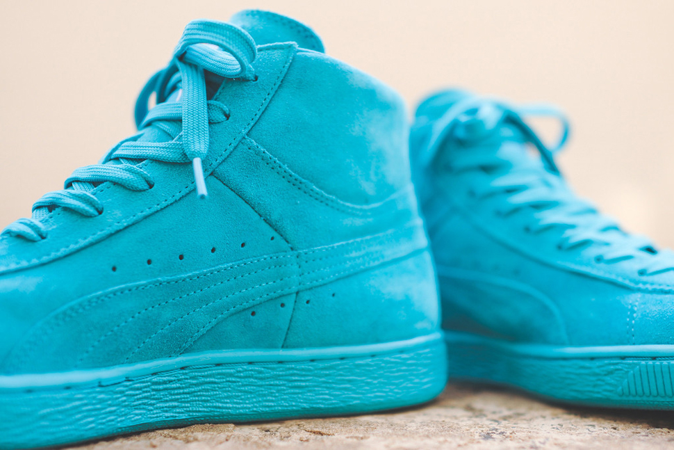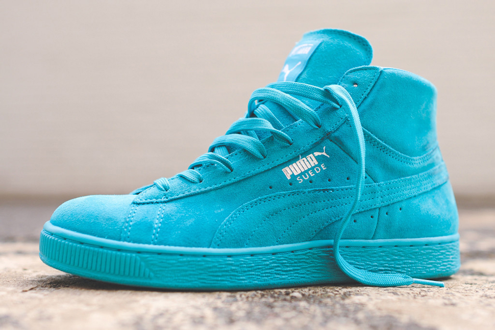Puma再次为Puma Suede Mid 推出全新“Aqua” 配色,鞋款整体由大面积湖水蓝麂皮打造而成,搭配搭配湖水蓝中底,令鞋款整体极为清新醒目。据悉这双Puma Suede Mid “Aqua” 现已在部分指定店铺发售,可惜的是由于太好看了,早已售罄(=.=)。