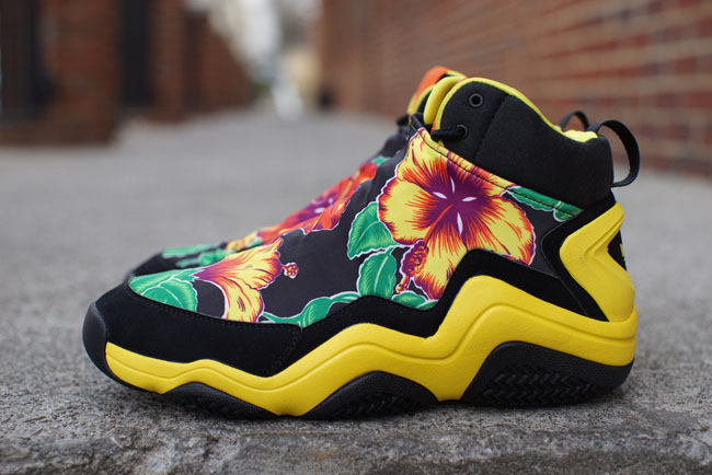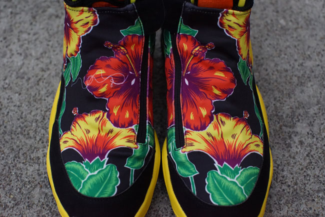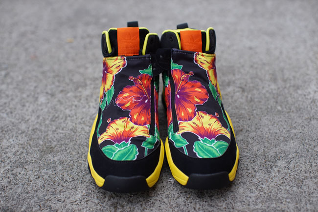 融合Feet You Wear概念而设计出的adidas Prime Skin鞋款因为大面积鞋罩而给了Jeremy Scott足够的发挥空间,黑色鞋身搭配黄色细节,鞋面绘以彩色花卉图案装饰,浮夸风格尽显Jeremy Scott的特别才华。
