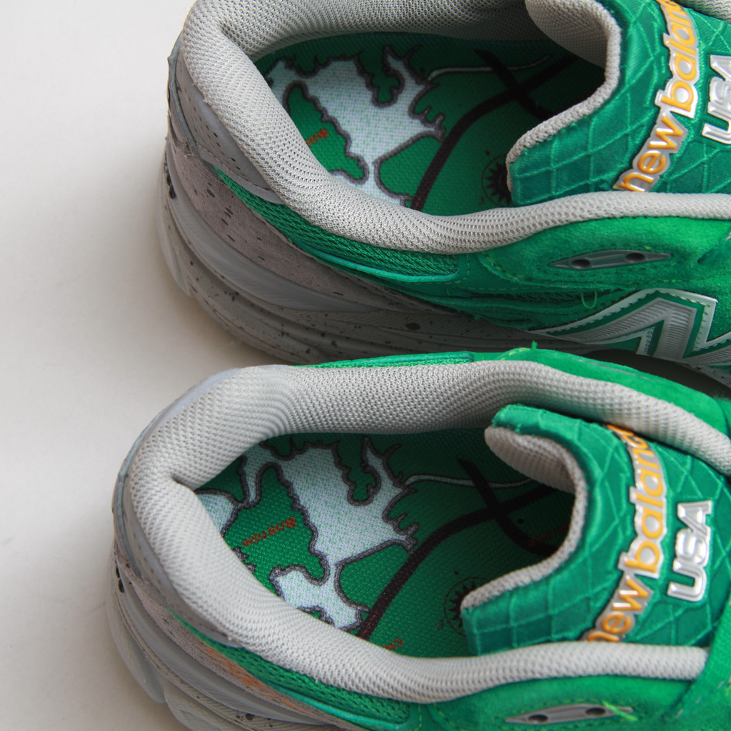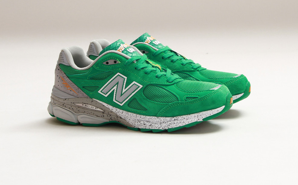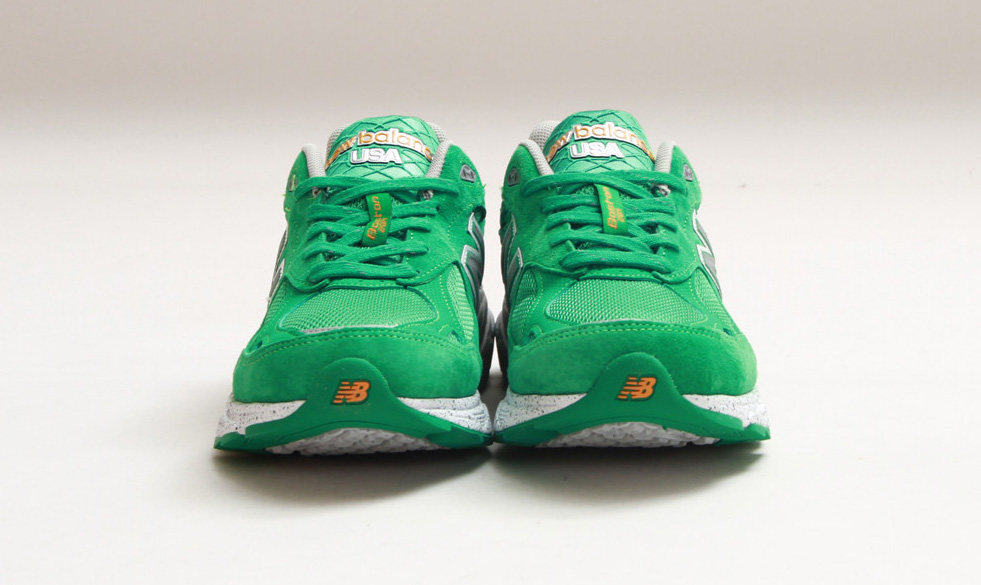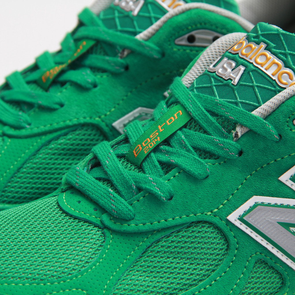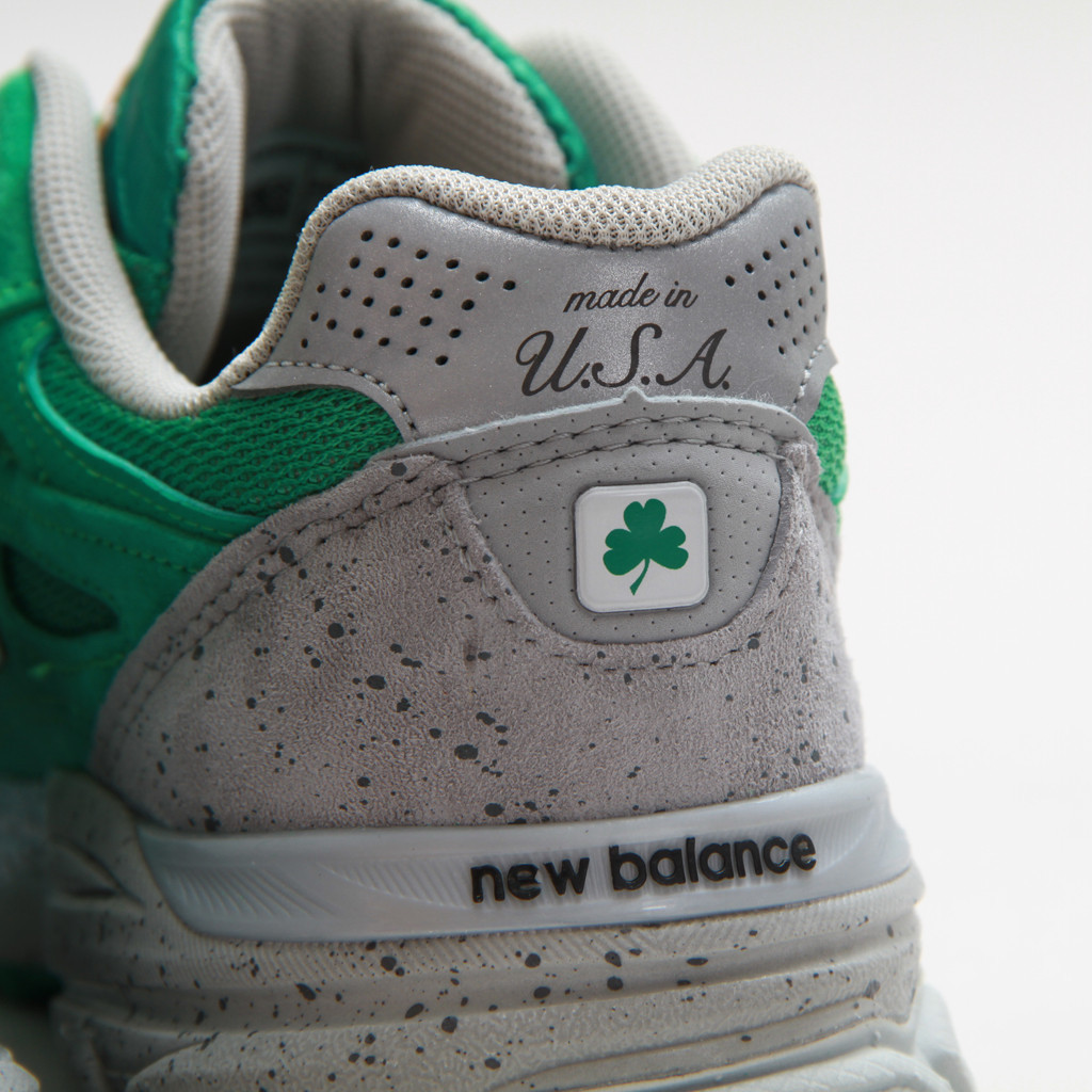 New Balance以极富爱尔兰风情的绿色以及圣帕特里克节为主题打造了全新波士顿马拉松赛别注M990。此双优质Made in USA鞋款选用绿色麂皮搭配网面织物,泼墨中底以爱尔兰巧言石为灵感,后跟点缀幸运草,鞋垫印有马拉松赛地图。此款M990现已正式发售。