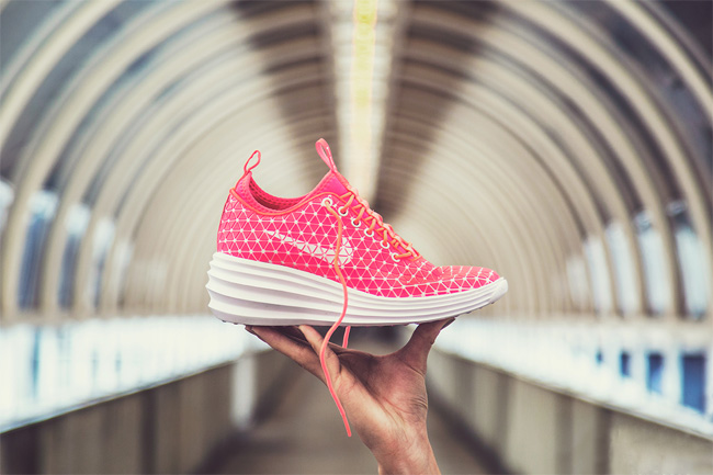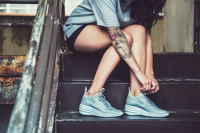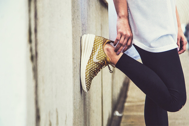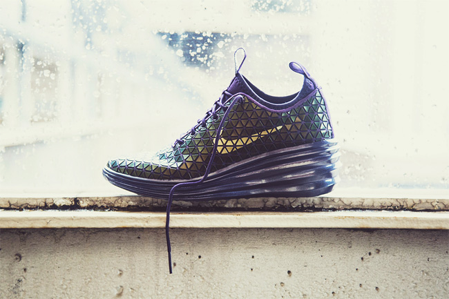 Nike 为女性消费者量身打造了 Nike Lunar Elite Sky Hi “City Pack”。整个系列都采用了分子结构式的鞋面图案,搭载 Lunar 鞋底,以银色、粉红色、金色和黑色鞋面呈现不同的效果,上脚颇为抢眼。