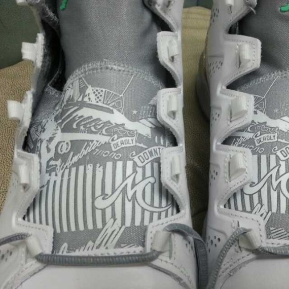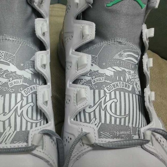 网上曝光全新配色Jordan Melo M10,鞋身没有橙色也没有皇家蓝,看似与纽约和Carmelo没有关系,但鞋舌镭射图案呈现出了此双版本的主题,我们可以暂且称为“致敬之作”,图案中描述了与Melo有关的一切,无论是其布鲁克林的成长经历还是波多黎各背景等内容都有所体现。