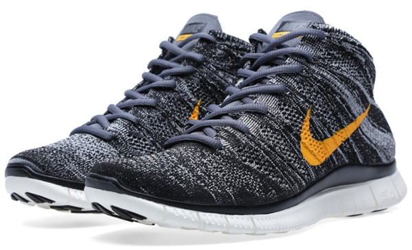 Nike Flyknit Chukka系列近日发布新款休闲跑鞋,Flyknit编织鞋面搭配Free 5.0外底,提升鞋款的舒适性,Flyknit编织鞋面采用黑灰色搭配,金色点缀Swoosh标识,配色十分养眼。目前鞋款已在指定店铺发售。 Nike Free Flyknit Chukka SP 货号:677537-070