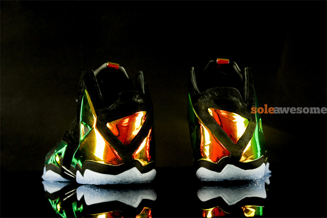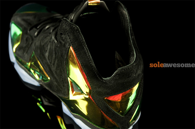 带来这款王者皇冠配色的 LeBron 11 EXT QS "King's Crown" 高清实物图赏,黑色麂皮鞋身搭配金色的 Hyperposite 材质,整体质感强烈并且十分抢眼。 货号:677693-001