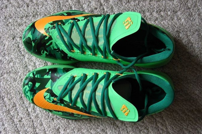 以迷彩纹饰装扮的复活节配色 KD6 "Easter" 将于 4 月 18 日正式发售,整体采用绿色色系打造,鞋面的迷彩涂装采用深浅绿色和黑色打造,融入各种复活节元素,颇为抢眼,给大家带来这款球鞋的实物照片。 相关信息: KD6 复活节配色正式发布