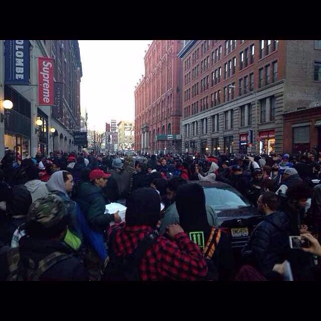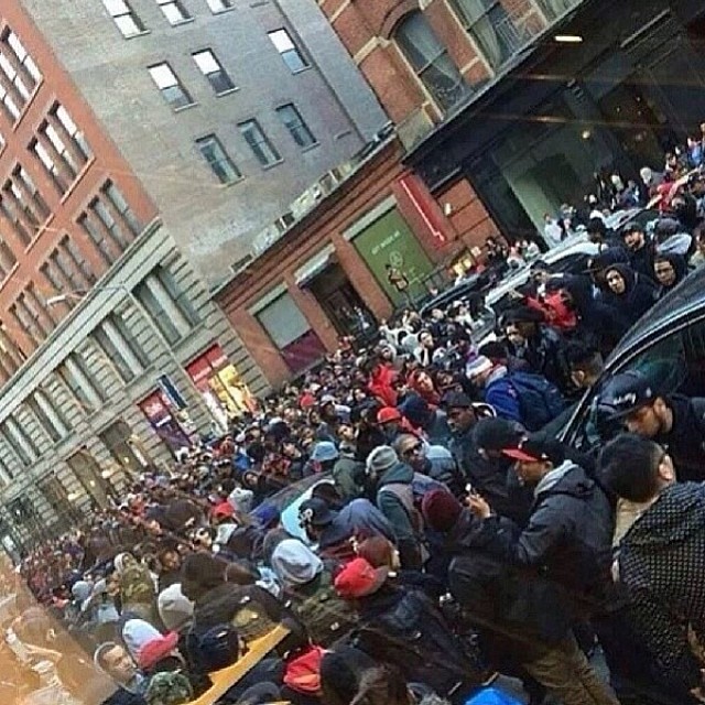 Supreme 携手 Nike 推出的 Supreme x Nike Air Foamposite One 及其配套服饰,于 4 月 3 日在全球各 Supreme 门店发售。而各地的爱好者也以十分的热情投入到排队大军当中。