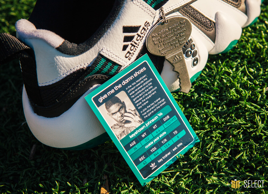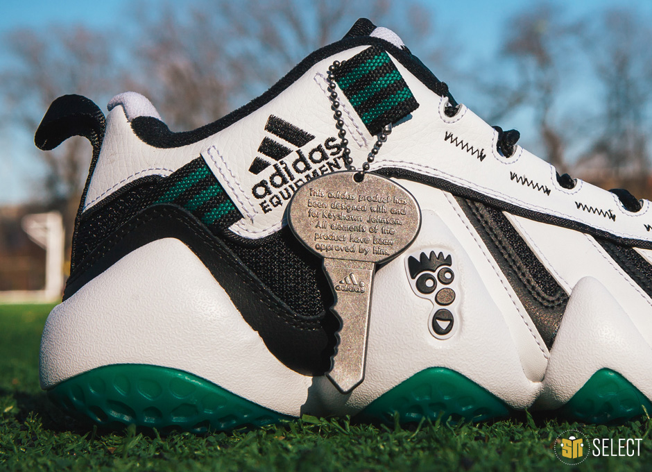 在经过了长达数年的等待之后,我们终于迎来了adidas Equipment Keyshawn Trainer的复刻。adidas Equipment Keyshawn Trainer是adidas为1996年NFL状元Keyshawn Johnson量身打造的签名训练鞋款,标志性的前卫造型加上简洁的黑白绿色调让人过目不忘。 adidas Equipment Keyshawn Trainer 将在各大adidas专柜及官方商城发售,售价:130美元。