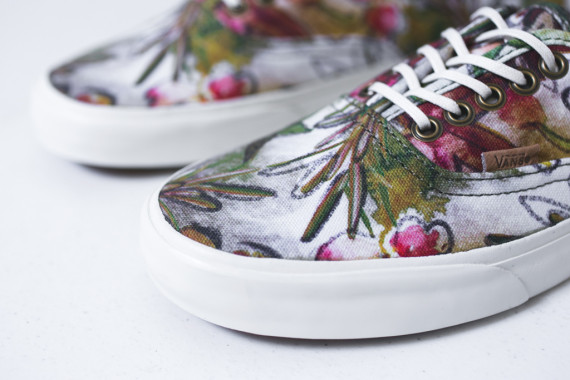 Vans 旗下高级支线 Vans California 向来擅长以花卉设计为主题,此次该支线再次祭出拿手招式,为2014春季季度推出了这款 "Floral" 系列。系列选取 Old Skool 及 Authentic 两款鞋型,设计师以帆布材质搭配一顶的麂皮面料构成鞋身,并在帆布材质上注入了丰富的花卉图案,系列整体洋溢着春天的烂漫气息。据悉这两款鞋已在各大 Vans 专柜上架。