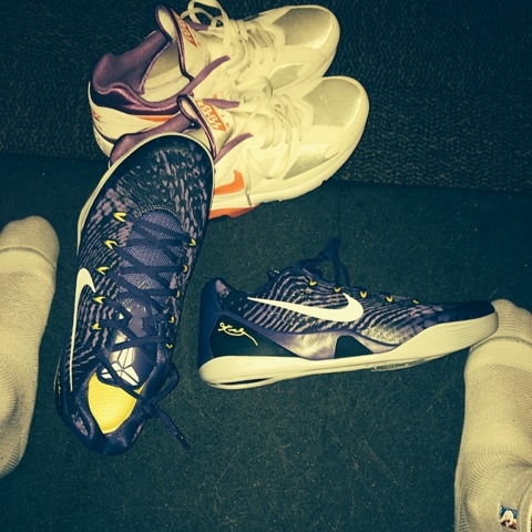 众所周知,菲尼克斯太阳队的P.J.Tucker是一位对球鞋十分痴迷的Sneakerhed。近日,他就在自己的社交媒体上向球迷们分享了一双刚刚得到的新鞋——Nike Kobe 9 EM。紫色鞋身辅以黑紫条纹装饰,搭配白色中底,黄色细节点缀动态飞线及鞋垫。这款全新配色的Nike Kobe 9 EM尚未曝光具体发售信息,感兴趣的朋友请关注我们的后续报道。
