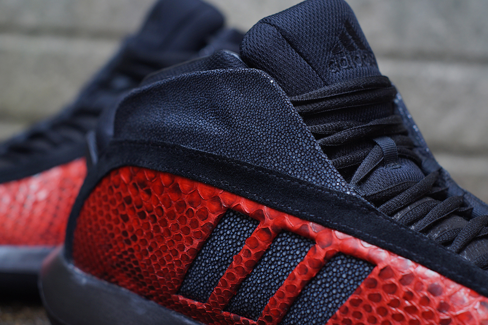 JBF Customs此次将标志性的蟒蛇纹路运用在adidas Crazy 1之上,为波特兰开拓者的 Damian Lillard打造了一双专属版本的定制球鞋。红色蛇纹材质取代了adidas Crazy 1标志性的鞋身,搭配黑灰细节中底,令鞋款呈现波特兰开拓者的色调同时还体现了优异质感。