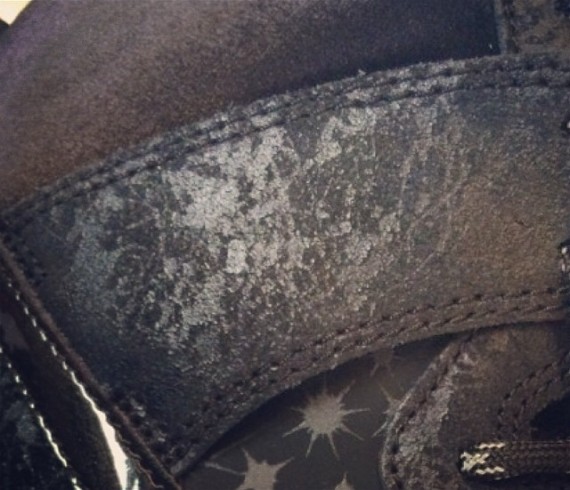 Brooklyn Projects再度联手Nike SB,打造全新联名SB Dunk High。Brooklyn Projects通过instagram提前放出局部谍照,暗色调鞋身选用多种材质搭配,麂皮配以纹理牛巴革,再搭配透明swoosh,类似闪耀星光的灰白色图案则凸显了好莱坞式的风格。