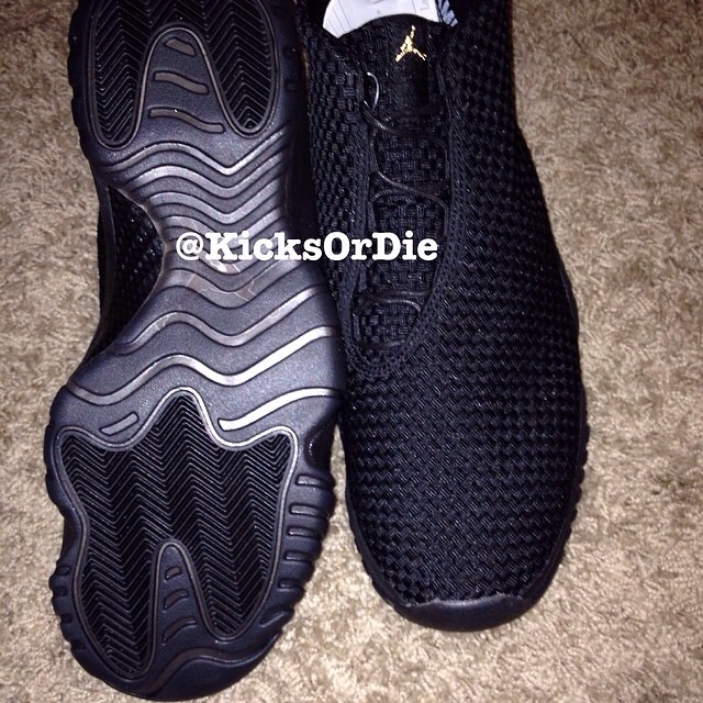上周末,Jordan Future 一口气曝光了16种配色,其中 Jordan Future “Multi-color” 配色的实物已经率先登场,现在网络上又曝光了一款全黑配色实物,以黑色鞋面搭配黑色大底,只在鞋舌上使用了少许金色点缀,整体视觉效果酷劲十足。据悉这款配色也会在今年夏秋两季内发售,值得期待一番。