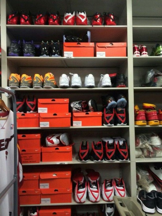 近日一张勒布朗 詹姆斯位于美航中心球馆的鞋柜图片在网络上流出,从图片中我们可以看出,虽然勒布朗本赛季都基本“放弃”了 LeBron 11,但是 LeBron 11 依旧占据了大部分鞋柜的位置,此外,还有一些即将上市的 LeBron 11 Low 以及勒布朗本赛季最为钟情的 Soldier 7。